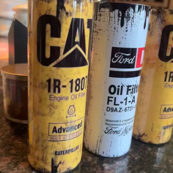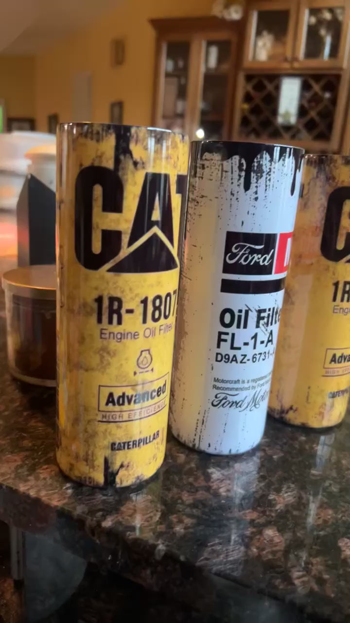 CAT oil filter themed 20 oz tumbler