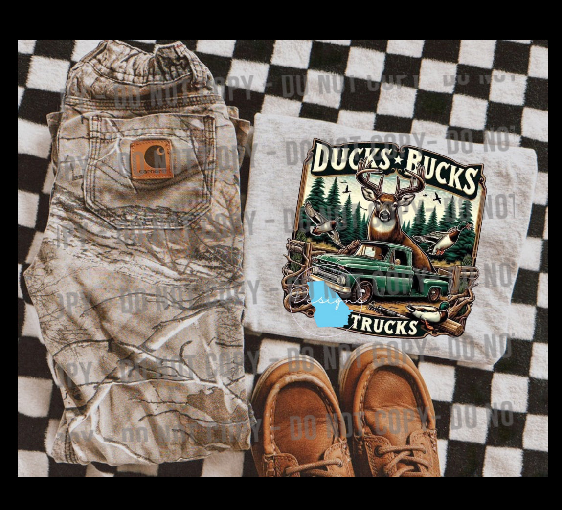 Ducks bucks and trucks hunting kids graphic t-shirt